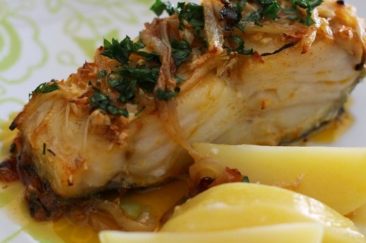 - Depois de dessalgar o bacalhau, transfira para dentro de uma forma grande, coloque ao redor as batatas e cubra tudo com o azeite e adicione as azeitonas;
