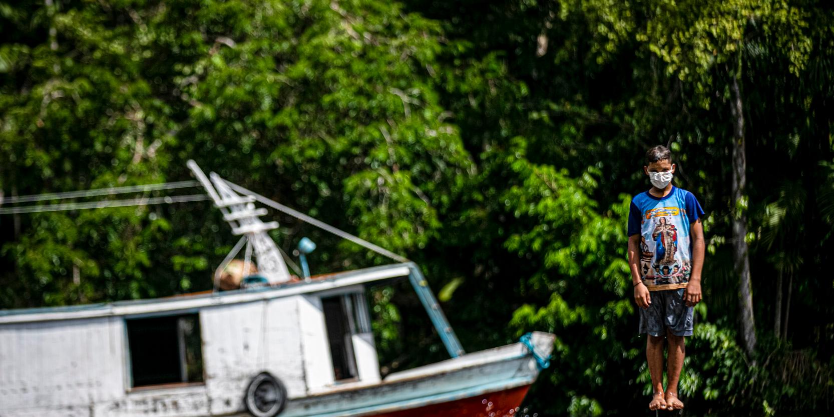 Jovem em Melgaço toma banho de máscara no rio em 2020 (Tarso Sarraf / O Liberal)“A pandemia vinha devastando por onde passava. Nos preparamos para quando ela chegasse, montando nossas equipes, criando um plano de ação, dividindo funções e nos munindo de EPIs [equipamentos de proteção individual], testes, medicamentos, materiais e insumos para conter a propagação da covid-19”, detalha o coordenador geral da saúde municipal de Melgaço, o enfermeiro Daniel Dias Balbi.