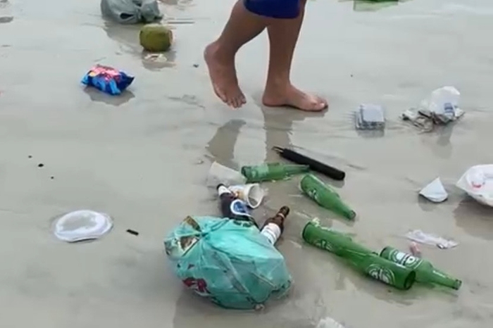 Outro problema que as imagens denunciam é a grande quantidade de lixo despejada na praia. São dezenas de garrafas, latas de bebidas e sacos plásticos poluindo o meio ambiente. “Olha a imensidão de sujeira que deixaram aqui na praia. Isso não é praia. Parece mais um chiqueiro”, desabafa uma mulher, em outro vídeo. Em nota enviada nesta segunda-feira (3), a Prefeitura de Salinópolis disse que quatro caçambas e duas outras máquinas estão trabalhando no recolhimento do entulho das praias e arredores. A cidade também está recebendo ações de limpeza. Segundo o comunicado, a previsão é de que ainda hoje as praias estejam limpas novamente.