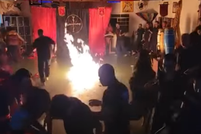 Nas imagens é possível ver as chamas consumir rapidamente os tecidos. Registrou, ainda, o susto dos cientes, filhos de santo e trabalhadores da casa. Algumas pessoas tentam se debater para se livrar do fogo. Em poucos minutos, um homem chega com extintor de incêndio e consegue apagar as chamas.