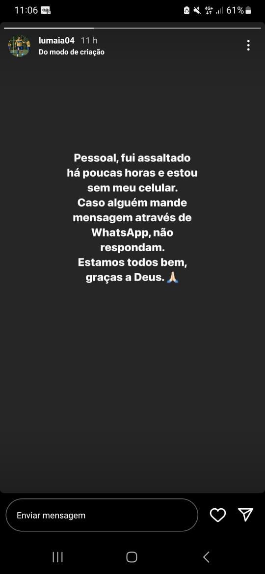 Zagueiro do Paysandu é assaltado em Belém e utiliza rede social para tranquilizar amigos O zagueiro do Papão Lucas Maia informou em seu Instagram que foi vítima de assalto. O jogador foi recém-contratado pelo Paysandu e estava atuando no México antes de acertar com o Bicola Fábio Will 15.01.24 11h40 Zagueiro Lucas Maia foi assaltado e teve seu celular levado por bandidos (Jorge Luís Totti/Paysandu) O zagueiro Lucas Maia, do Paysandu, foi vítima de um assalto na noite de ontem (14), e teve seu celular levado por bandidos, quando saia de uma igreja no bairro da Sacramenta, em Belém. O jogador de 30 anos utilizou seu perfil no Instagram, para comunicar o que ocorreu. O atleta alviceleste informou que está tudo bem, mas fez um alerta para que amigos e familiares não respondam as mensagens em seu nome por aplicativo de mensagens. “Pessoal. Fui assaltado há poucas horas e estou sem celular. Caso alguém mande mensagens através de Whatsapp, não respondam. Estamos todos bem graças a Deus”, publicou em um story no seu perfil. VEJA MAIS Libertadores e Sul-Americana em Belém? Gluck Paul pretende inscrever o Mangueirão para sediar finais Presidente da FPF, Ricardo Gluck Paul, informou que Belém pode formalizar candidatura para receber decisões da Conmebol e afirmou que Belém é forte candidata a receber a final da Supercopa do Brasil em 2025 De olho no Parazão, Paysandu x Tuna fazem amistoso hoje na Curuzu; veja onde comprar ingressos Clássico entre Papão e Águia do Souza servirá também para apresentar os elencos aos torcedores da capital, após pré-temporada dos clubes realizadas em cidades do interior do Estado Presidente do Paysandu estipula prazo e detalha obras no CT e na Curuzu; saiba mais Além de detalhar os serviços no CT, contou que as obras na Curuzu estão em ritmo acelerado Carreira Lucas Maia iniciou a carreira no Grêmio-RS e teve passagens pelo Resende-RJ e São José-RS, no Brasil. O zagueiro também jogou por muito tempo no México, além de ter atuado na Dinamarca e em Malta. Seu último clube foi o Puebla, do México onde realizou 25 partidas e marcou um gol. VEJA MAIS De olho no Parazão, Paysandu x Tuna fazem amistoso hoje na Curuzu; veja onde comprar ingressos Clássico entre Papão e Águia do Souza servirá também para apresentar os elencos aos torcedores da capital, após pré-temporada dos clubes realizadas em cidades do interior do Estado Zagueiro Lucas Maia fala sobre planejamento do Paysandu para 2024: ‘Projeto vitorioso’ Antes de ser contratado pelo Papão, Maia estava atuando no futebol mexicano, e foi apresentado oficialmente nesta segunda-feira (18) Novo zagueiro do Paysandu presenteia mãe com casa nova; veja Recém-contratado pelo bicolor paraense, o ex-defensor do Puebla-MEX homenageou a mãe com um presentão de natal Presente Antes de chegar a Belém, Lucas Maia fez uma surpresa e deu de presente de natal uma casa para sua mãe. Ela fez questão de publicar uma foto no Instagram agradecendo ao filho pelo presente. Assine O Liberal e confira mais conteúdos e colunistas. 🗞 Entre no nosso grupo de notícias no WhatsApp e Telegram 📱 Palavras-chave esportes paysandu futebol paysandu lucas maia série b jornal amazônia COMPARTILHE ESSA NOTÍCIA Paysandu . Desculpe pela interrupção. Detectamos que você possui um bloqueador de anúncios ativo! Oferecemos notícia e informação de graça, mas produzir conteúdo de qualidade não é. Os anúncios são uma forma de garantir a receita do portal e o pagamento dos profissionais envolvidos. Por favor, desative ou remova o bloqueador de anúncios do seu navegador para continuar sua navegação sem interrupções. Obrigado! ÚLTIMAS EM PAYSANDU Futebol Parazão: Paysandu abre venda de ingressos para os dois jogos contra o Remo Os bilhetes da grande final custam entre R$ 50,00 e R$ 160,00 para um jogo e até R$ 280,00 para os dois jogos Re-Pa 23.02.26 17h40 FUTEBOL Enquete aponta ex-dirigentes como principais responsáveis pela crise financeira do Paysandu Papão passa por crise fora das quatro linhas e pediu Recuperação Judicial na Justiça 23.02.26 16h54 Futebol Paysandu conhece tabela básica da Série C 2026; estreia será contra o Volta Redonda em abril CBF divulga calendário da competição, que será disputada entre 5 de abril e 25 de outubro e marca a última edição no formato atual com 20 clubes 23.02.26 16h51 futebol Roger Aguilera diz que vai retirar nome da lista de credores do Paysandu: 'Jamais irei cobrar' Ex-presidente do Papão foi citado em documento que lista dívidas do time bicolor, que está em recuperação judicial 23.02.26 13h25 MAIS LIDAS EM ESPORTES FUTEBOL Roger Aguilera, Matheus Nogueira e outros: confira a lista de credores do Paysandu Em recuperação judicial, Papão tem mais de R$ 70 milhões de dívidas 23.02.26 12h31 FUTEBOL De olho na Série A, Remo exerce poder de compra e fecha a contratação de atacante Atacante Jajá estava no Goiás e desembarcou em Belém para se apresentar ao Leão Azul 23.02.26 13h15 futebol Roger Aguilera diz que vai retirar nome da lista de credores do Paysandu: 'Jamais irei cobrar' Ex-presidente do Papão foi citado em documento que lista dívidas do time bicolor, que está em recuperação judicial 23.02.26 13h25 CLÁSSICO PARAENSE Quando é o próximo Re-Pa? Veja as datas da final do Parazão 2026 Clássico entre Remo e Paysandu volta a decidir o estadual no Estádio do Mangueirão 23.02.26 8h57