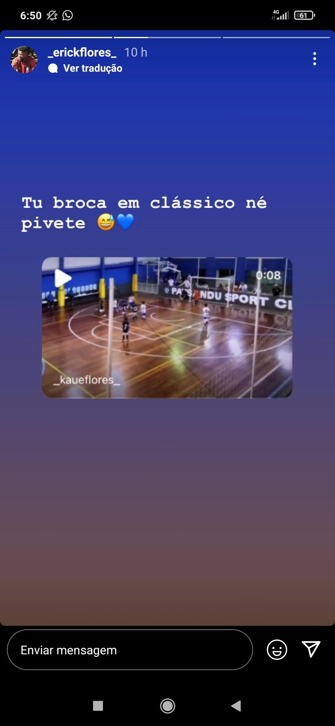 VÍDEO: Jogando futsal pelo Remo, filho de Erick Flores marca no clássico contra o Paysandu Atacante comentou o gol do filho na sua conta no Instagram O Liberal 25.10.21 11h28 Kauê é o primeiro à esquerda em pé (Arquivo pessoal) Contratado durante o Campeonato Paraense a pedido do técnico Paulo Bonamigo, que ainda era o comandante azulino, Ercik Flores vive um momento complicado, de recuperação e iniciou a transição na semana passada. Em Belém com o filho, Erick viu o filho marcar no clássico contra o Paysandu, pelo Parazão de Futsal Sub-7. A partida ocorreu no Ginásio Moura Carvalho, do Paysandu e terminou com um trinfo remista. Um dos gols foi marcado pelo filho de Erick, o pequeno Kauê, que rendeu comentários do pai nas redes sociais. “Tu broca em clássico, né pivete”, escreveu, Erick em seu Instagram. Assista ao gol Ver essa post no Instagram Uma publicação compartilhada por oliberal.com (@oliberal) Erick Flores teve uma lesão grau três, no reto anterior da coxa direita. O tempo de recuperação, à princípio, seria de seis semanas, mas o jogador voltou a sentir a contusão durante a transição e retornou departamento médico. Na última sexta ele iniciou uma nova transição, juntando Série B e Brasileiro, até o momento ele desfalcou o Remo em 14 partidas. Nessa temporada ele realizou 19 jogos com a camisa do Leão, marcou um gol e deu quatro assistências. Assine O Liberal e confira mais conteúdos e colunistas. 🗞 Entre no nosso grupo de notícias no WhatsApp e Telegram 📱 Palavras-chave esportes remo futsal futebol jornal amazônia erick flores mais esportes COMPARTILHE ESSA NOTÍCIA Remo . Desculpe pela interrupção. Detectamos que você possui um bloqueador de anúncios ativo! Oferecemos notícia e informação de graça, mas produzir conteúdo de qualidade não é. Os anúncios são uma forma de garantir a receita do portal e o pagamento dos profissionais envolvidos. Por favor, desative ou remova o bloqueador de anúncios do seu navegador para continuar sua navegação sem interrupções. Obrigado! ÚLTIMAS EM REMO PARAZÃO Patrick de Paula fala sobre gol salvador que colocou Remo na final: 'único na minha vida' Jogador marcou um golaço nos acréscimos e sacramentou a virada remista contra o Cametá 23.02.26 20h57 FUTEBOL Dirigente do Remo fala sobre contratações e detalha conversas com zagueiro e meia Lingard Vice-presidente do Remo, Glauber Gonçalves, explicou que existe conversas entre o clube e jogadores, mas que situação depende de uma força-tarefa 23.02.26 16h08 FUTEBOL De olho na Série A, Remo exerce poder de compra e fecha a contratação de atacante Atacante Jajá estava no Goiás e desembarcou em Belém para se apresentar ao Leão Azul 23.02.26 13h15 Futebol Técnico do Remo avalia vitória contra o Cametá no Parazão e disse estar orgulhoso da equipe Treinador Juan Carlos Osorio citou a oportunidades criadas no jogo, principalmente no primeiro tempo 22.02.26 21h27 MAIS LIDAS EM ESPORTES PROMESSAS Belém abriu o calendário nacional do tênis juvenil Reunindo atletas de várias regiões, 1ª Etapa do Nacional Juvenil 2026 reforça a presença da região Norte no calendário nacional da modalidade 24.02.26 0h21 FUTEBOL De olho na Série A, Remo exerce poder de compra e fecha a contratação de atacante Atacante Jajá estava no Goiás e desembarcou em Belém para se apresentar ao Leão Azul 23.02.26 13h15 PARAZÃO Patrick de Paula fala sobre gol salvador que colocou Remo na final: 'único na minha vida' Jogador marcou um golaço nos acréscimos e sacramentou a virada remista contra o Cametá 23.02.26 20h57 Futebol Paysandu conhece tabela básica da Série C 2026; estreia será contra o Volta Redonda em abril CBF divulga calendário da competição, que será disputada entre 5 de abril e 25 de outubro e marca a última edição no formato atual com 20 clubes 23.02.26 16h51