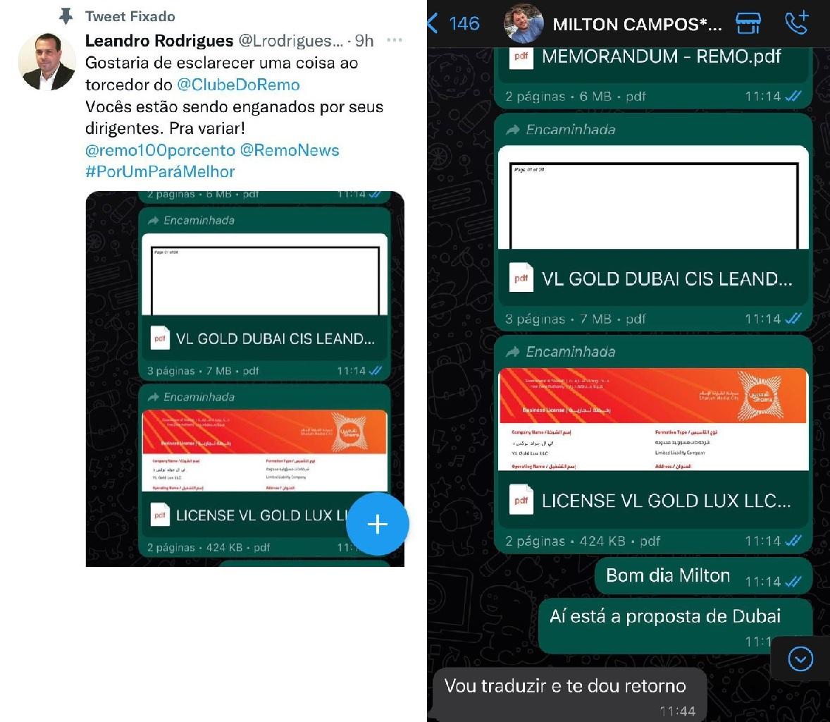 Remo nega proposta de R$ 200 milhões por SAF e empresário posta foto e diz: 'Não estou mentindo' Milton Campos informou que não recebeu proposta, mas caso receba, trabalhará em cima dela. Por outro lado, o empresário Leandro Rodrigues, afirmou que os documentos estão em posse do presidente do Condel Fábio Will 06.05.22 16h10 Estádio Evandro Almeida, o Baenão (Igor Mota / OLiberal) A Sociedade Anônima do Futebol (SAF) voltou a ser um assunto forte no Remo. A possível compra do departamento de futebol pelo ex-jogador e empresário Leandro Rodrigues, da empresa VL Gold Dubai, que teria oferecido ao Leão Azul mais de R$ 210 milhões de reais pelo futebol do Clube do Remo, foi negada através de Milton Campos e Fábio Bentes, presidentes do Condel e do Codir, respectivamente. Após isso, Leandro utilizou o Twitter e publicou um print de uma suposta conversa com Campos afirmando que a proposta de compra do Remo mãos está nas mãos do presidente do Conselho Deliberativo remista. VEJA MAIS Remo: empresário oferece mais de R$200 milhões para comprar SAF azulina; Fábio Bentes nega proposta Empresário carioca afirmou ter emitido proposta ao Remo direcionada ao presidente do Condel azulino, Milton Campos, para a compra do departamento de futebol do clube Presidente do Condel desmente empresário e nega proposta de compra da SAF do Remo Segundo Milton Campos, caso haja alguma oferta, ela será discutida pelos demais conselheiros do clube. SAF: Após reunião, Condel do Remo cria comissão para estudos da Sociedade Anônima do Futebol Presidente do Condel, Milton Campos, conversou com a equipe de O Liberal e falou sobre a reunião que ocorreu na Sede do Remo e como o clube busca informações sobre o modelo da SAF A equipe de O Liberal entrou em contato com Leandro Rodrigues, que confirmou que o print é real, mas que ele decidiu apagar a postagem após pedido de Israel Athayde, pessoa que está intermediando o possível negócio em Belém com o Remo. “Eu sou uma pessoa que tento dar oportunidade e tento destinar ao Pará, mas é difícil que as pessoas aceitem a evolução, elas não aceitam melhorias. Quando eu vejo o jornal noticiando que a pessoa que a gente fez o contato, que é o Milton Campos, com uma semana com documento oficial nosso em mãos, dizer que eu estou mentindo, a primeira e única coisa que a gente pensa em fazer é o quê? Olha, está aqui, eu não estou mentindo, olha a verdade aqui exposta. Eu não tenho porque participar de mentira. Ficar passando por mentiroso por falta de qualquer outra coisa que seja da parte deles. Tudo que eu quero é trabalhar sério. É uma proposta séria, proposta real”, comentou. Vazou O dono da VL Gold Dubai afirmou que a proposta ainda está de pé, que espera do Remo apenas uma resposta, seja positiva ou negativa com relação ao negócio e lamentou que detalhes da proposta tenham vazado. "Eu estou colocando a minha cara a tapa. A porta se chama Clube do Remo e eu não tenho outra coisa a fazer que me defender quando eu vejo uma notícia, né? Hoje, com as mídias sociais, temos praticamente a resposta imediata a qualquer coisa que se fale. Então as pessoas precisam ter mais cuidado com o que falam, pois se você fala, você tem que conseguir manter aquilo. Porque rapidamente a verdade aparece. Então é isso que eu gostaria que eles entendessem. A única coisa que eu quero é que se reportem a mim com respeito. É o mínimo. O tratamento tem que ser respeitoso e ético. E eu não gostaria que as coisas tivessem vazado na internet, mas uma vez que vaza, qual é o problema de falar a verdade para o povo? Por que que o povo tem que seguir sendo enganado? Por que que sempre é primeiro fazer as coisas ao modo escondido para depois ver a melhor solução?”, questionou. VEJA MAIS O que é SAF? Entenda ‘novo negócio’ entre Remo e empresário que vai custar R$200 milhões Veja o que vai mudar se a proposta do empresário carioca for aceita pelo presidente para a compra do departamento de futebol do clube SAF: modelo de gestão de clubes é apresentado aos conselheiros do Remo; entenda Membros do Condel azulino participaram de palestra do executivo Rafael Lacerda, da Universidade do Futebol, para entender novo modelo que pode aportar no Leão Azul SAF: Após reunião, Condel do Remo cria comissão para estudos da Sociedade Anônima do Futebol Presidente do Condel, Milton Campos, conversou com a equipe de O Liberal e falou sobre a reunião que ocorreu na Sede do Remo e como o clube busca informações sobre o modelo da SAF Uma resposta do Remo Leandro Rodrigues, que trabalha com commodity, intermediação de compra e venda de ouro e diamantes, além e criptomoedas, disse ainda que o documento está em posse de Milton Campos e que quer uma resposta do Remo, que não possui nada a esconder e que retirou a postagem do Twitter com o print de uma conversa de Milton Campos e seu "representante". “Até entendo que eles queiram trabalhar em silêncio para que a torcida não se inflame e etc, mas uma vez que já vazou - o que não tem nada a ver comigo, não foi culpa minha -, acho que só resta falar a verdade, porque que eles continuam mentindo dizendo que não chegou nada, se está aí a prova, entendeu? Há mais de uma semana o documento oficial em mãos, em posse deles, e nem o carinho de responder de forma oficial, um 'recebido', eles não tiveram ainda. Estou tendo que cobrar isso deles, tá? Então assim, a situação para mim, continua de pé. Eu até retirei a postagem [do Twitter], o Israel Athayde está conduzindo a situação junto com o Milton Campos, eu quero dizer que não tenho o que esconder e não vou esconder de hipótese alguma”, comentou. Milton Campos O presidente do Condel do Remo, Milton Campos, informou a O Liberal que não recebeu nenhuma proposta e que assim que receber, irá analisar e que só irá falar sobre o assunto se for algo correto. “Não chegou nenhum documento, mas, se chegar, vamos saber qu