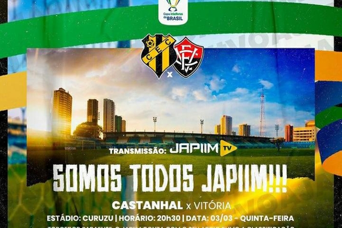 Copa do Brasil: jogo entre Castanhal e Vitória será transmitido pela Japiim TV Confronto entre os times acontece nesta quinta-feira, a partir das 20h30, no estádio da Curuzu Luiz Guilherme Ramos 01.03.22 22h40 Japiim da Estrada entra em campo nesta quinta-feira, pela Copa do Brasil. (@jadielfernando_ / Castanhal) A direção do Castanhal confirmou a transmissão da partida de estreia na Copa do Brasil, nesta quinta-feira, contra o Vitória/BA, pelo portal JapiimTV, no Youtube. O jogo será realizado no estádio da Curuzu. O Castanhal joga pela vitória, enquanto a equipe visitante tem a seu favor até o empate, para avançar à segunda fase da competição. Divulgação. Assine O Liberal e confira mais conteúdos e colunistas. 🗞 Entre no nosso grupo de notícias no WhatsApp e Telegram 📱 Palavras-chave futebol copa do brasil 2022 castanhal vitória-ba jornal amazonia o liberal COMPARTILHE ESSA NOTÍCIA Futebol . Desculpe pela interrupção. Detectamos que você possui um bloqueador de anúncios ativo! Oferecemos notícia e informação de graça, mas produzir conteúdo de qualidade não é. Os anúncios são uma forma de garantir a receita do portal e o pagamento dos profissionais envolvidos. Por favor, desative ou remova o bloqueador de anúncios do seu navegador para continuar sua navegação sem interrupções. Obrigado! ÚLTIMAS EM FUTEBOL Copa do Brasil Fortaleza x Maguary: onde assistir ao vivo e escalações do jogo de hoje (24/02) pela Copa do Brasil Fortaleza e Maguary jogam pela Copa do Brasil hoje; veja as formações e onde assistir ao vivo o jogo de hoje 24.02.26 20h30 Copa Libertadores da América Independiente x Liverpool: onde assistir ao vivo e escalações do jogo hoje (24) pela Libertadores Independiente Medellín e Liverpool-URU jogam pela Copa Libertadores da América hoje; veja as formações e onde assistir o jogo ao vivo 24.02.26 20h30 Copa do Brasil América-RN x GAS: onde assistir ao vivo e as escalações do jogo de hoje (24/02) pela Copa do Brasil América RN e GAS jogam pela Copa do Brasil hoje; veja as formações e onde assistir ao vivo o jogo de hoje 24.02.26 20h30 Copa Libertadores da América Huachipato x Carabobo: onde assistir ao vivo e escalações do jogo de hoje (24/02) pela Libertadores Huachipato e Carabobo jogam pela Copa Libertadores da América hoje; veja as formações e onde assistir o jogo ao vivo 24.02.26 18h00 MAIS LIDAS EM ESPORTES Futebol Segurança reforçada para Remo x Internacional no Mangueirão pela Série A Operação contará com mais de 800 agentes, 500 câmeras de monitoramento e esquema especial de trânsito para público estimado em 25 mil torcedores 24.02.26 18h36 Futebol Remo anuncia atacante Jajá para reforçar elenco na temporada Jogador de 27 anos chega do Goiás e projeta disputa da Série A e da Copa do Brasil 24.02.26 21h11 FUTEBOL Marcos Braz está próximo de assumir o departamento de futebol de time da Série C Braz deixou o Remo antes da estreia da Série A e segue sem clube no mercado 24.02.26 17h08 Futebol Remo intensifica preparação para encarar o Internacional no Mangueirão Azulino aposta na força em casa e na recuperação física após sequência desgastante de jogos 24.02.26 18h59